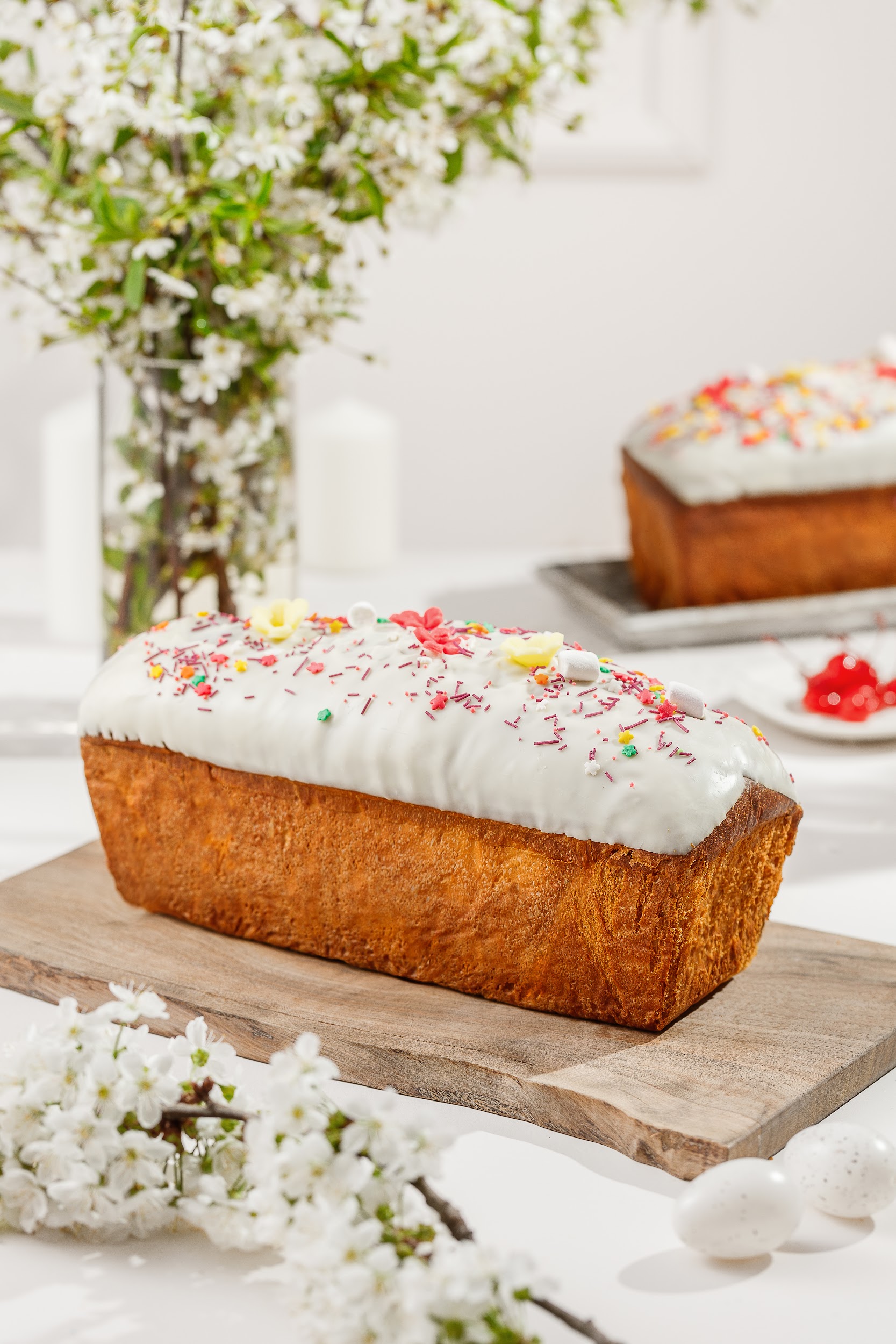 Cozonac produs după o rețetă specială, cu lapte, unt, gălbenușuri de ou si miere de albine.